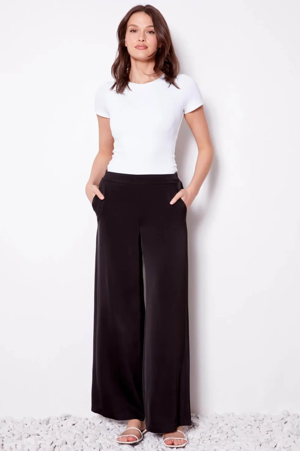 Belize Satin Wide-Leg Full Length Pant – Black 68487UP by Up Pants! at The Wardrobe The epitome of understated elegance, boasting a sultry sophistication with a luxe fashion-forward appeal. The vibe is minimal, with an elongating cut, a work-to-weekend versatility, and an effortless ‘throw-on-and-go’ appeal. It’s a pol