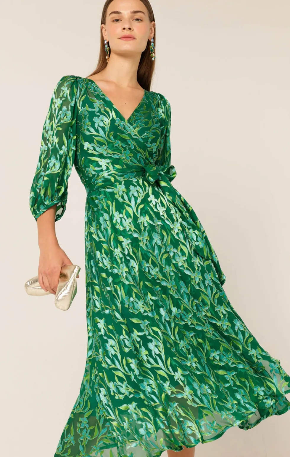 Orchid Wrap Dress D23-S25 – by Sacha Drake at The Wardrobe The Orchid Wrap Dressfeatures SACHA DRAKE’s iconic wrap design in a luxurious silk rayon fabric, complete with bloused 3/4 sleeves and a flattering hi-lo silhouette. It comes with a stretch jersey slip which can be reversed for extra bust coverage, and is the