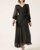 TheCalais Wrap Dress by Sacha Drake at The Wardrobe,exudes elegance with its silk-rayon burnout fabric in a chic polka dot print, complete with our signature wrap design. Featuring a fluted skirt, gathered sleeves, and a slight hi-lo hemline, this ankle length dress is perfect for sophisticated events. • Silk rayon b