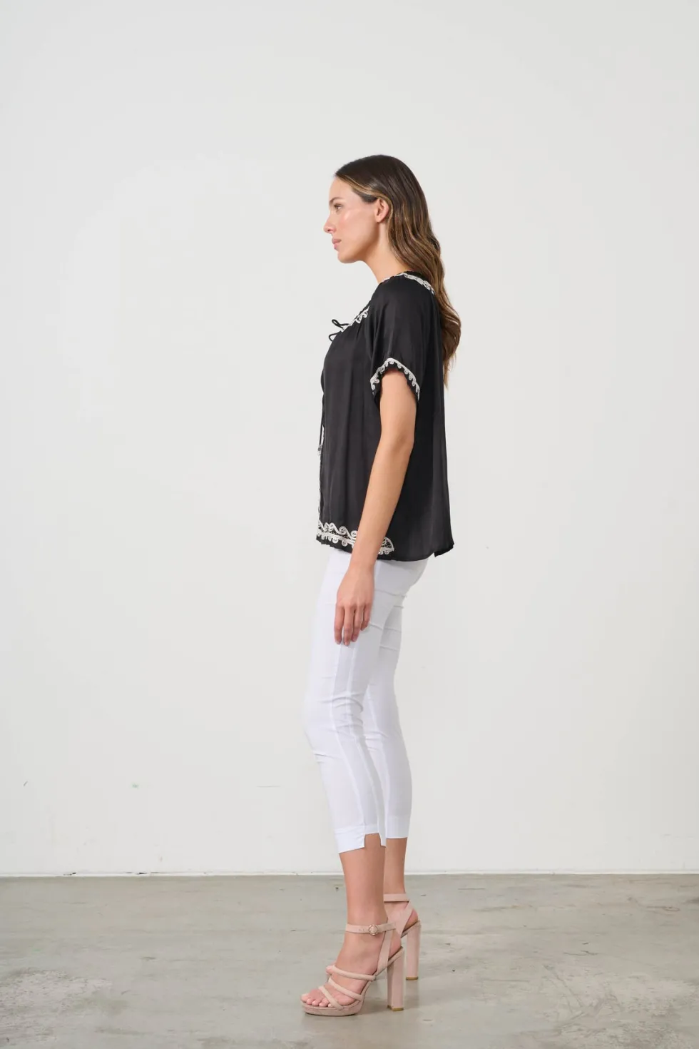 Applique Bead & Neck Tie Blouse CZ1080 by Caju at The Wardrobe 100% Viscose Hand wash in warm water Do no iron Drycleanable