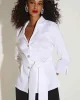 Stretch Taffeta Fitted Blouse – White This jacket is crafted to captivate, combining timeless elegance with modern sophistication. Made from stretch taffeta, it boasts a subtle sheen and a sleek, polished finish. The fitted silhouette accentuates your figure, while the classic lapel collar adds a touch of refinement.