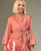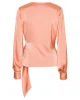 Innes Blouse – Semi Rich Peach 2090KM by Karmamia at The Wardrobe. Femininity and style embody the Ines Blouse. The neckline drapes softly around the bodice, and a satin ribbon gathers at the waist to highlight your curves. The Ines Blouse comes with long sleeves finished with a wide cuff round out the blouse. The col