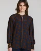 The Baroque is a stunning top in a modern, ornate paisley print with contrasting details. It features a collar with a stylish front opening,textured metal shank buttons, long drapey sleeves, and neat cuffs. 100% Viscose Hand wash separately in cool water. Cool iron on reverse to reshape using minimum steam. Dry clean