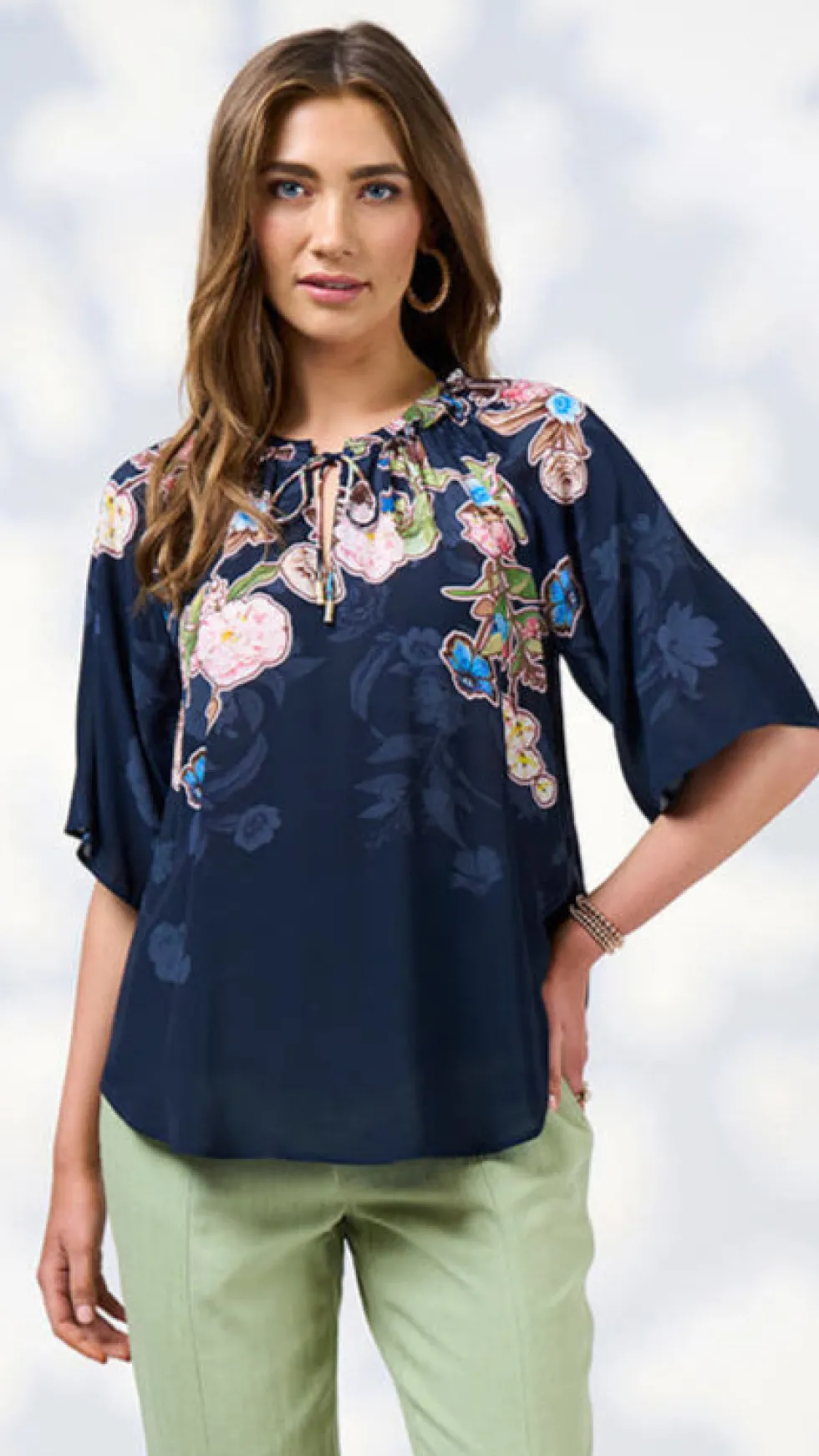 Maeve Blouse – Indigo LS3025 by Loobie's Story at The Wardrobe 100% ViscoseInstructions:Cool hand wash using mild detergent, do not machine wash. Do not rub/soak/wring/bleach. Do not tumble dry. Dry away from direct sunlight. Warm iron to resume to size and shape. Drycleanable. Max shrinkage 3-4%