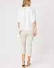 Lino V Neck Top 48258 – White by Gordon Smith at The Wardrobe Features: Relaxed, breathable, and effortlessly polished – theLino V-Neck Top is crafted from a lightweight linen blend that’s perfect for warm days and easy layering. Featuring a softgathered V-neckline, elbow-length sleeves with elasticated cuffs, and a