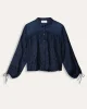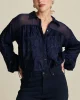 Jacquard Midnight Blue Blouse Pom8015 by Pom Amsterdam at The Wardrobe This blue blouse with wide sleeves is perfect for autumn! The blouse has a wavy effect in the fabric and bows at the sleeves. This item is made of 100% viscose and is a more sustainable item. • Dark blue blouse• Jacquard fabric