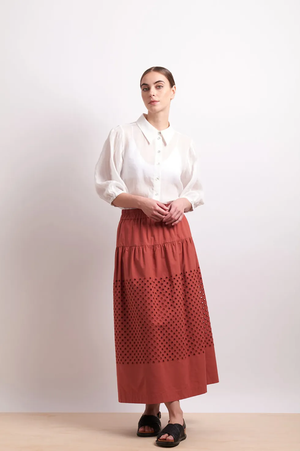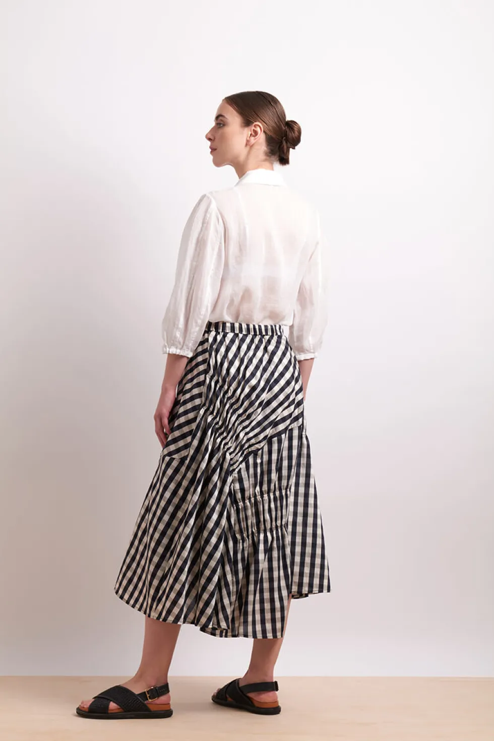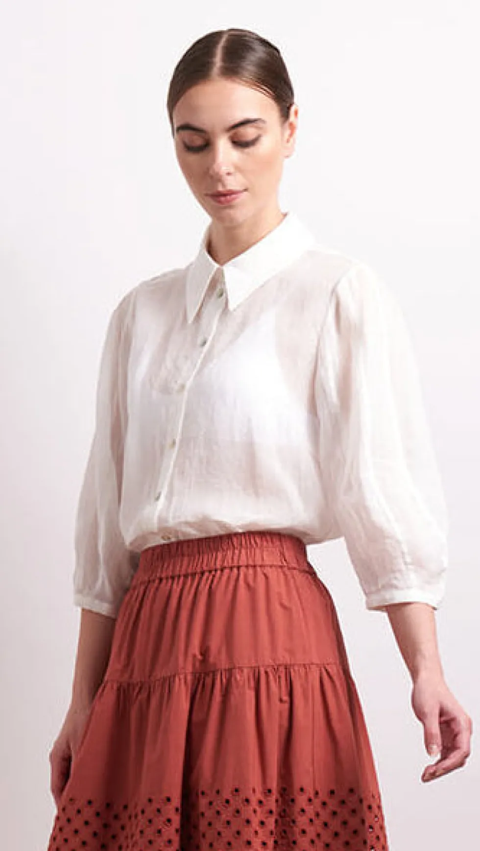 Pin Tuck Blouse 2784 by Neris at The Wardrobe The Pin Tuck Blouse brings subtle sophistication to everyday wear. Crafted from a sheer, lightweight 100% ramie, it's a relaxed fit with elegant pintuck detailing on the collar and single bottom on to close. It has soft bell sleeves with shirred cuffs. A refined staple with