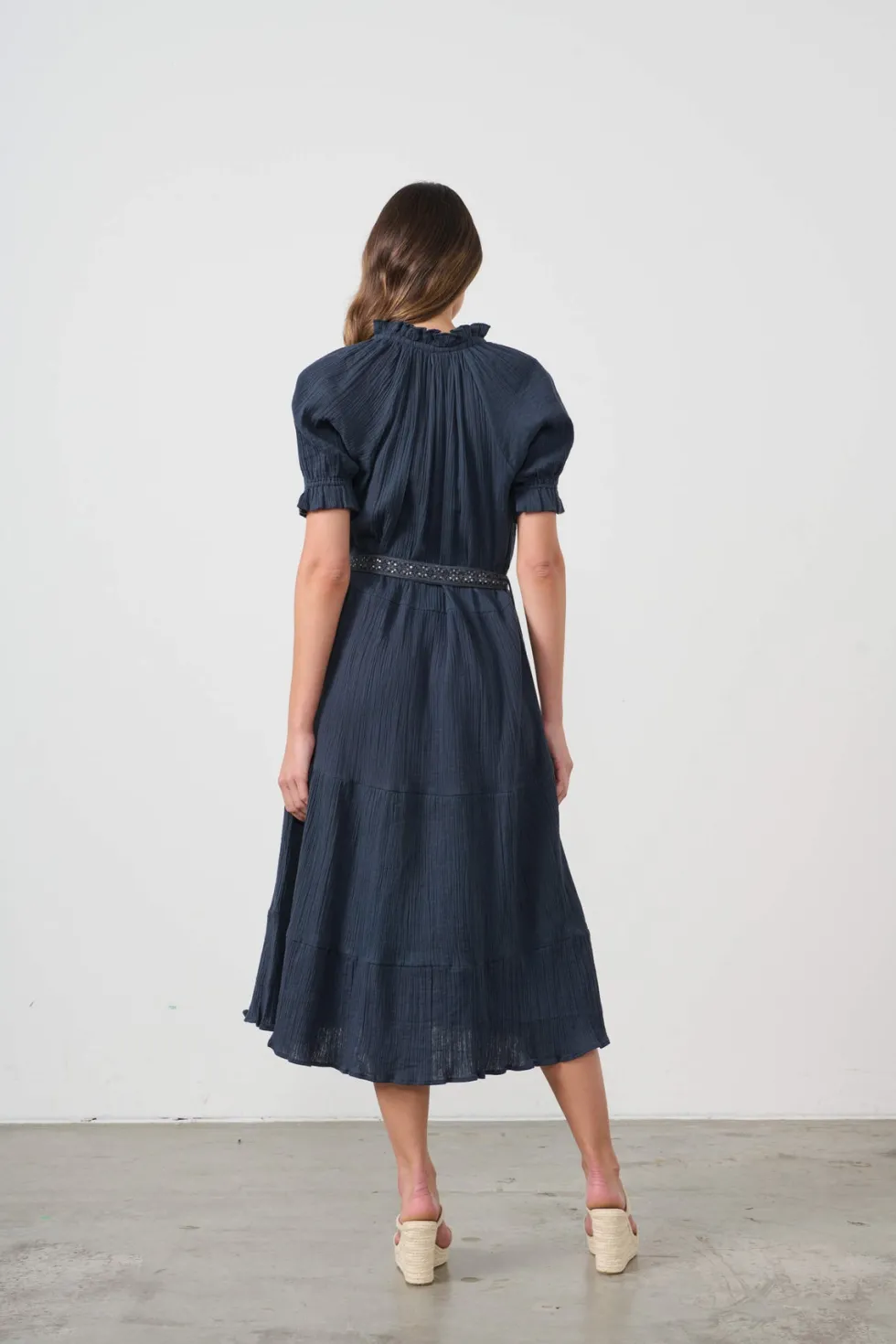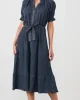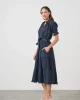 Self Coloured Embroidery & Belt Dress CZ1054 by Caju at The Wardrobe . Special self-coloured embroidery Delicate micro-sequins for sparkle Waist belt with belt loops Side pockets Feminine shape Relaxed fit Unlined raglan sleeve Buttoned neckline Lined in 100% Cotton Handwash separately in warm water. Use mild det