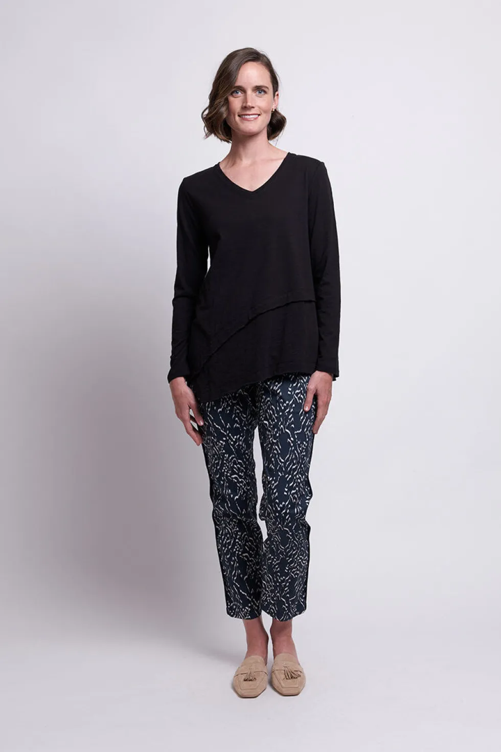 Pipe Dream Trapeze Pant – 7595 by Foil available at The Wardrobe 69% Cotton 27% Nylon 4% Elastane Machine Wash with similar colours . Bluey Grey colour