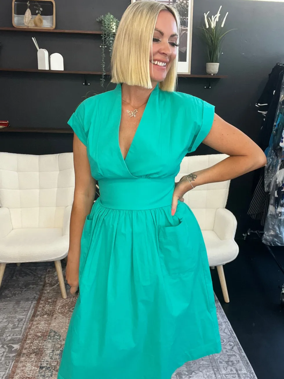 It's A Stunner Dress – Peppermint FO7516 by Foil at The Wardrobe 97% Cotton 3% Elastane