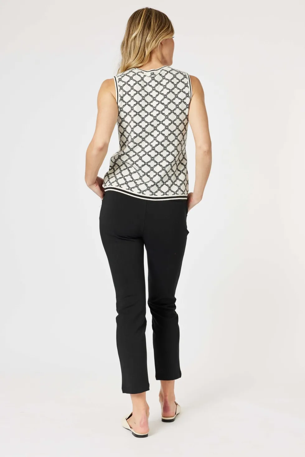 The Clover Print Top Cardigan 46645 by Gordon Smith at The Wardrobe features a unique, stylish pattern. The Clover Cardigan is also available. The stripe detail adds visual interest and complements the design beautifully. Effortlessly pairs back with the matching Clover Cardigan for a sophisticated and stylish look Vi