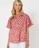Cockatoo Shirt by Hammock & Vine 43296 at The Wardrobe 100% Cotton Playful pink & red cockatoo print Soft collar with button through placket Short fluted sleeves Sits below the hips on most Model wears size 8/XS and stands 173cm tall.