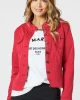 Maggie Denim Jacket – White 44017 by Threadz At The Wardrobe Expertly crafted from durable denim, the Maggie Denim Jacket features tarnished silver hardware, a sleek collarless neckline, and top stitching on the seams for added strength and style. With its super stretch fabric, this jacket offers the perfect fit for an