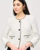 Queen of Scots Bouclé Jacket With Contrast – Cream 243911 by Joseph Ribkoff at The Wardrobe. This is a sale item and is only eligible to return for a store credit or exchange. This bouclé jacket is the perfect piece for adding texture and structure to an outfit. With a contrast trim, faux chest pockets, and a front bu