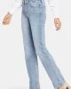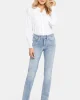 90% Cotton, 8% Elastomultiester, 2% Lycra® Elastane Made with Lift Tuck® Technology to flatten in the front and flatter curves in the back. Zip fly and button closure; five-pocket styling Machine wash cold and line dry. The easy, figure-elongating construction of the NYDJ Marilyn Straight Jeans pairs well with everyt