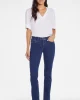 90% Cotton, 8% Elastomultiester, 2% Lycra® Elastane Made with Lift Tuck® Technology to flatten in the front and flatter curves in the back. Zip fly and button closure; five-pocket styling Machine wash cold and line dry. The easy, figure-elongating construction of the NYDJ Marilyn Straight Jeans pairswell with everyth
