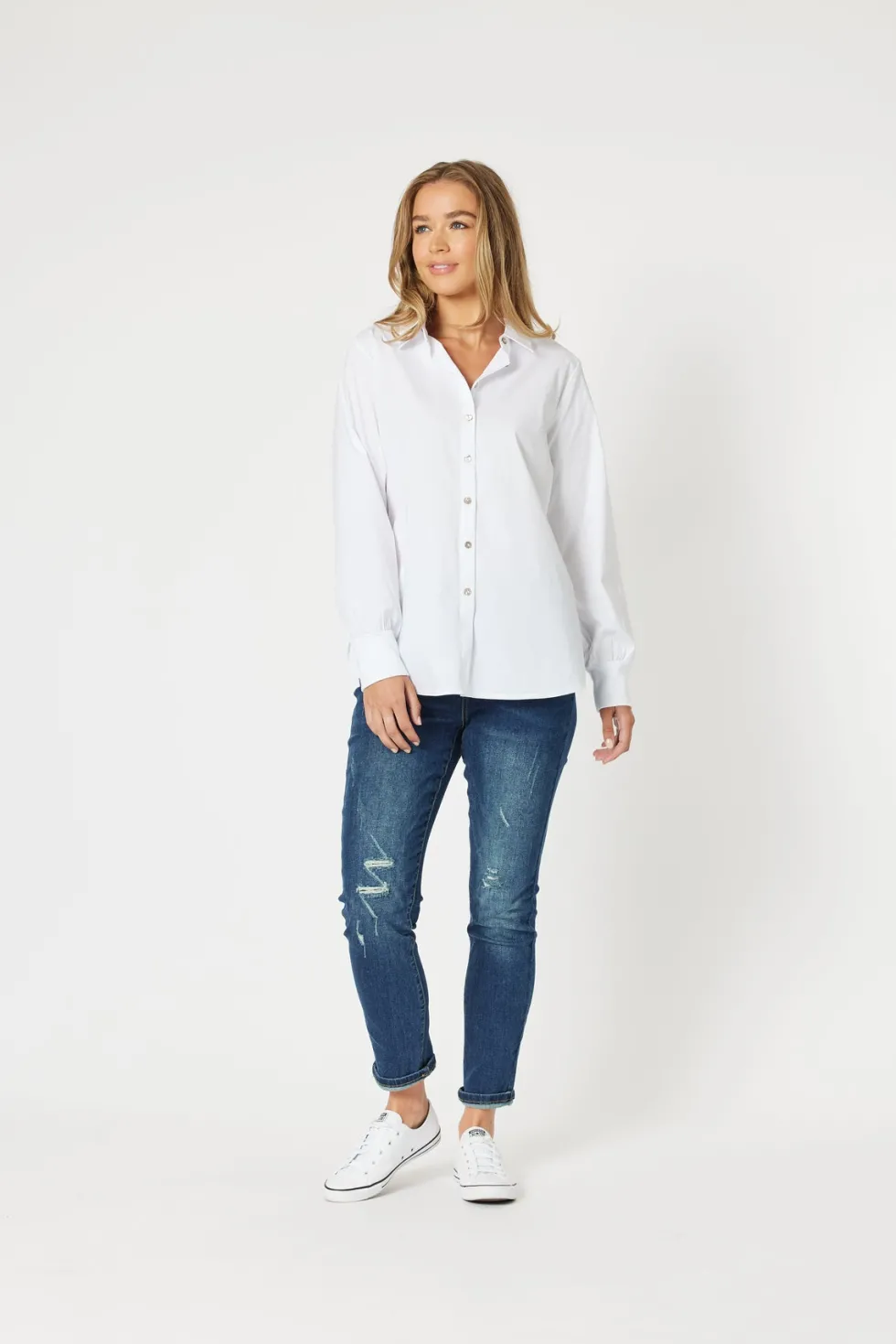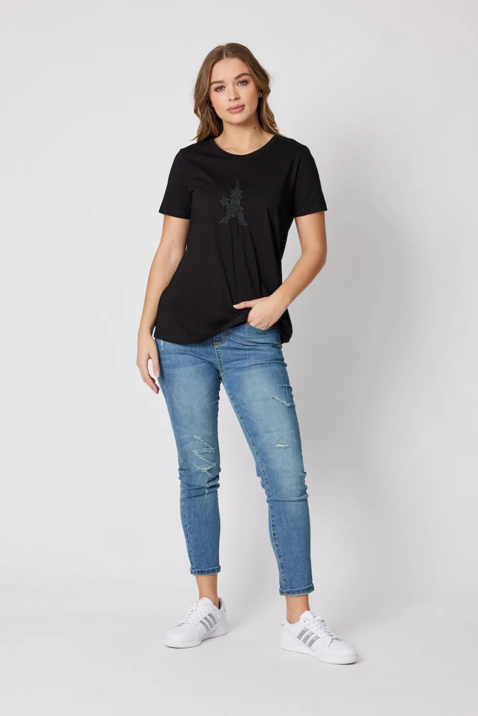 Pull On Ripped Jeans – TH35371 by Threadz at The Wardrobe Also available in Black Fitted through the leg Ankle grazer style on most Super stretch for all day fit and comfort Elastic waist for easy pull on fit Distressed finish Contrast stitching on pockets and seams Fabric backed distressed areas for comfort 4 Pocket