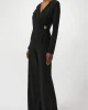 Supernatural Wide Leg Jumpsuit 253046 by Joseph Ribkoff at The Wardrobe. Boasting a sleek design and contemporary charm, this silky knit jumpsuit is a statement of refined style. The wide-leg silhouette flows gracefully, complemented by a wrapped V-neckline and long sleeves for an effortlessly polished look. Button det