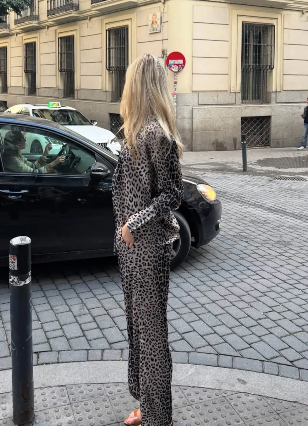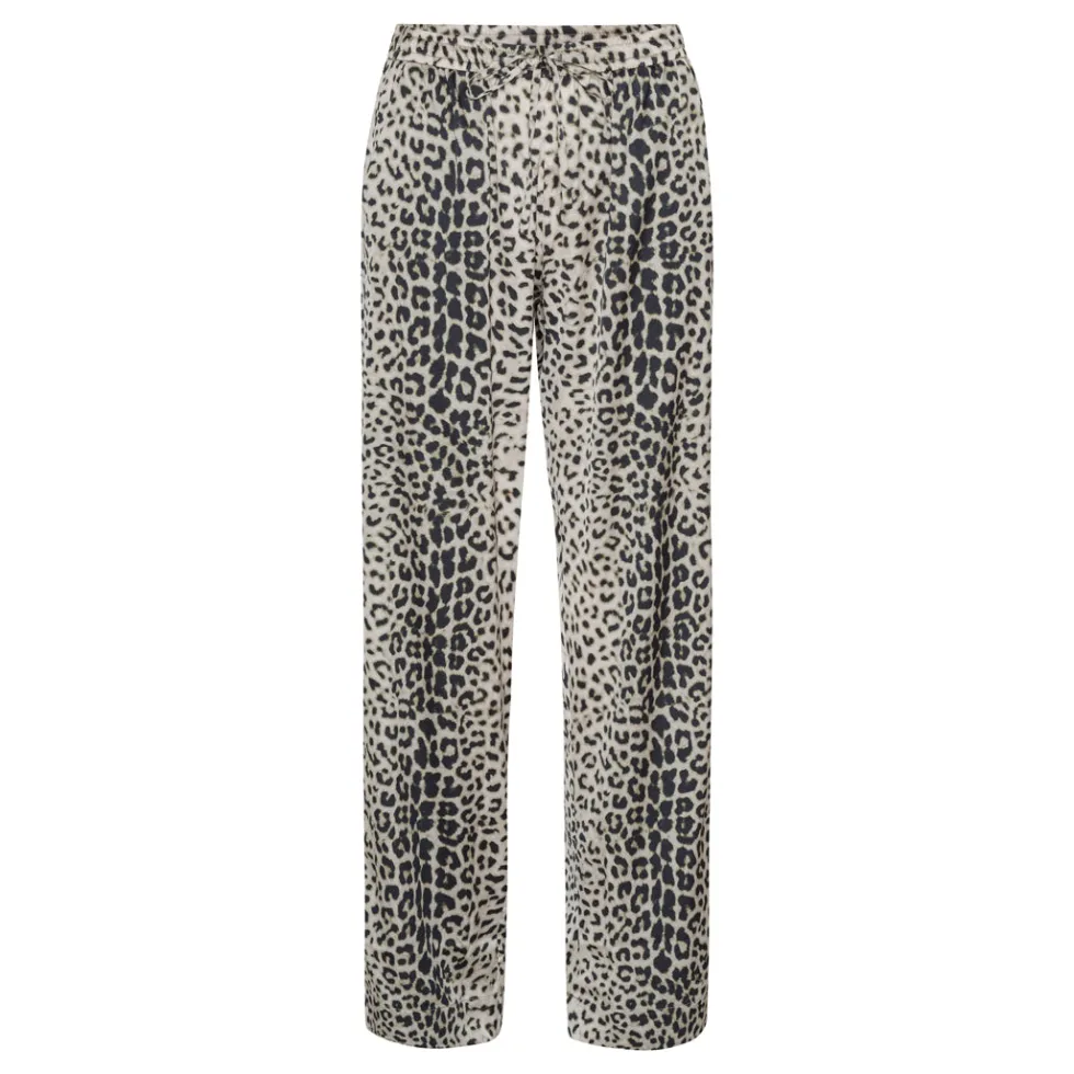 Lou Pants – Nude Leopard by Karmamia at The Wardrobe Super cool track pants with straight legs. Wash care:Machine washable 30 degreesMaterial:62 % satin-woven recycled polyester, 38 % high-grade polyester (eco-friendly)