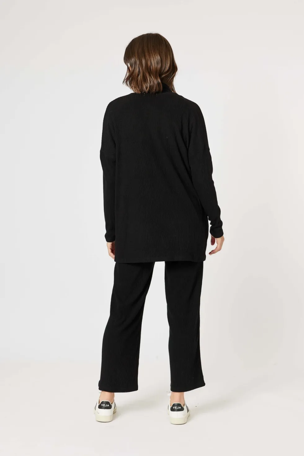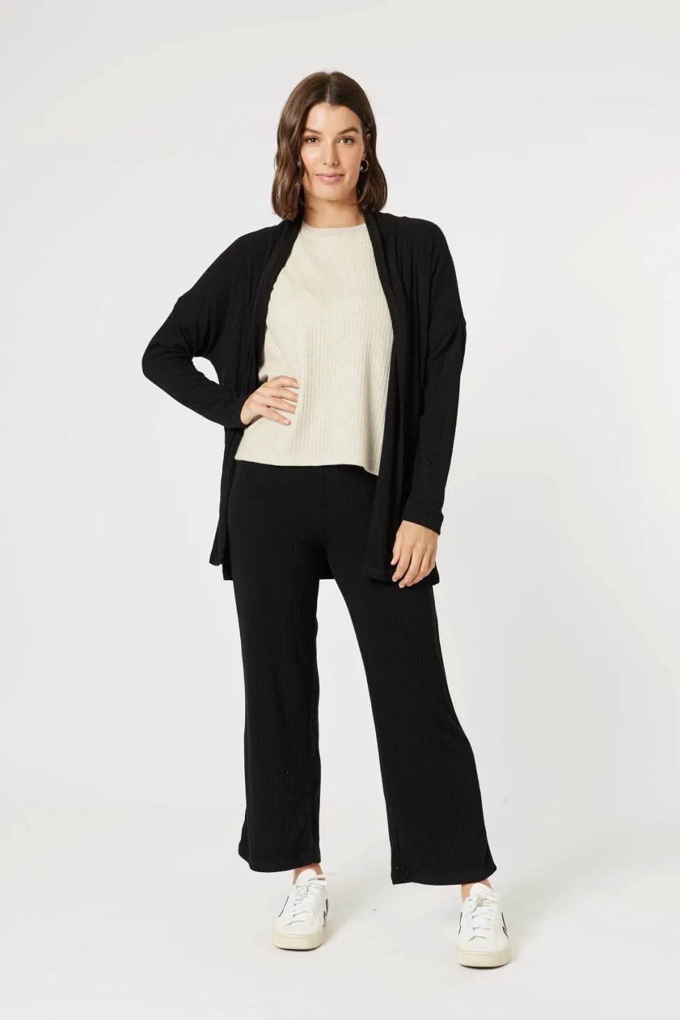 Ribbed Lounge Cardigan – Black 46978 Clarity at The Wardrobe Wrap yourself in luxurious comfort with our Ribbed Lounge Cardigan. This soft and stylish cardigan is the perfect addition to your loungewear collection. With its ribbed texture, it offers a cosy fit that is sure to make you feel relaxed and at ease. Pair it