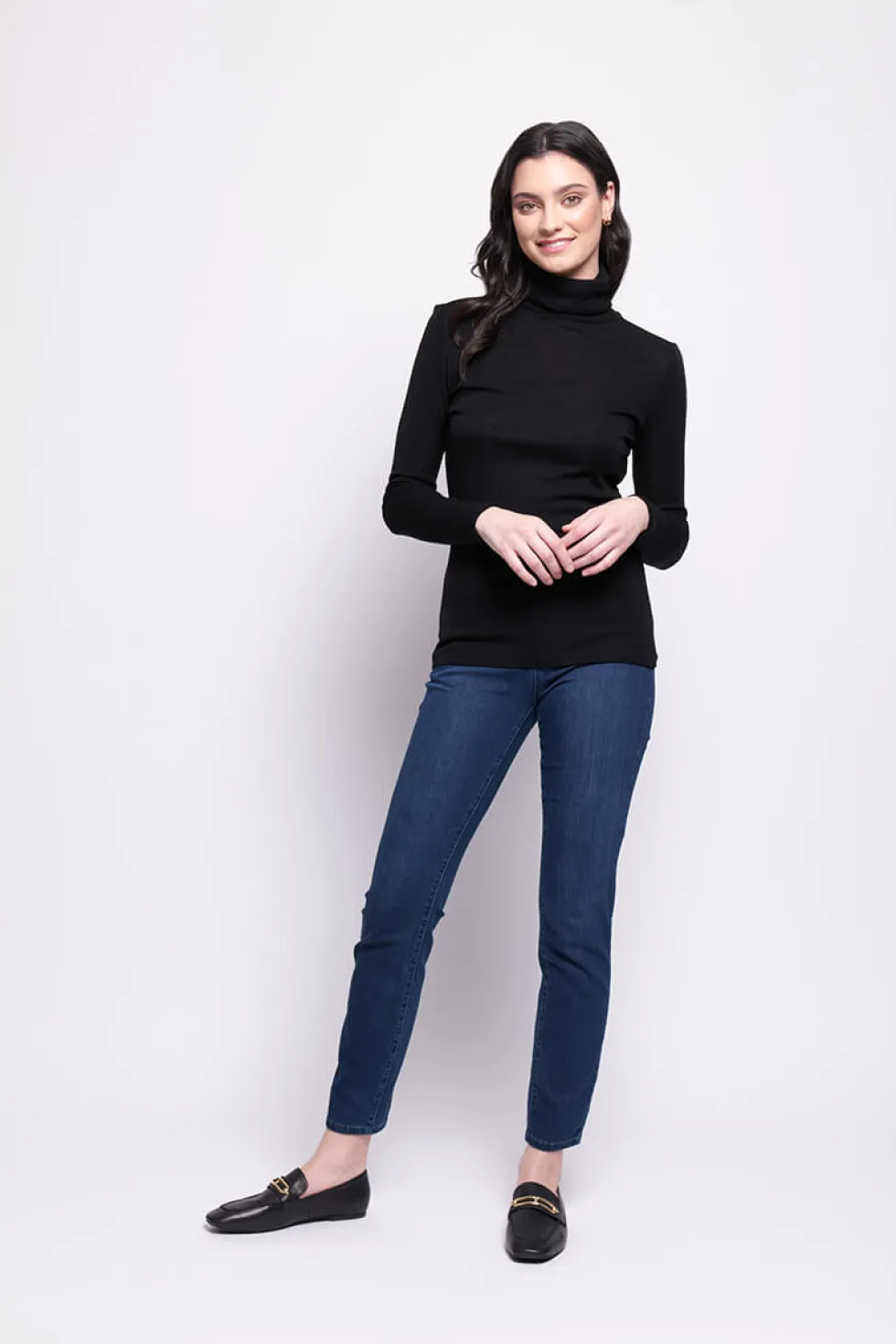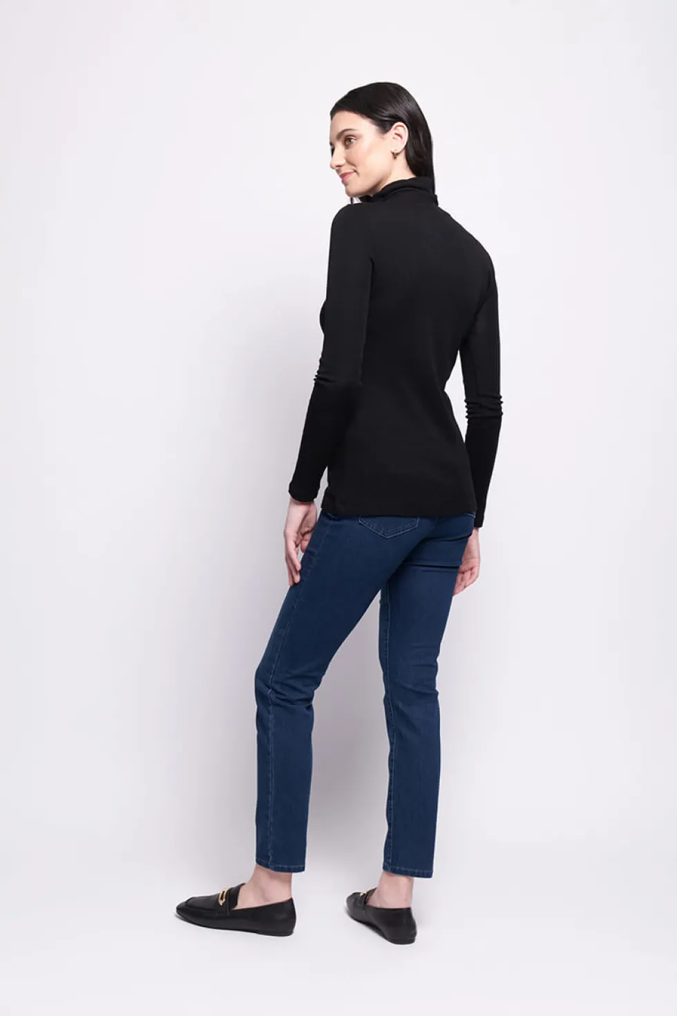 Fine Merino Polo Neck Top – Black FO4171 by Foil At The Wardrobe. 100% Merino Wool Gentle Cool Machine Wash