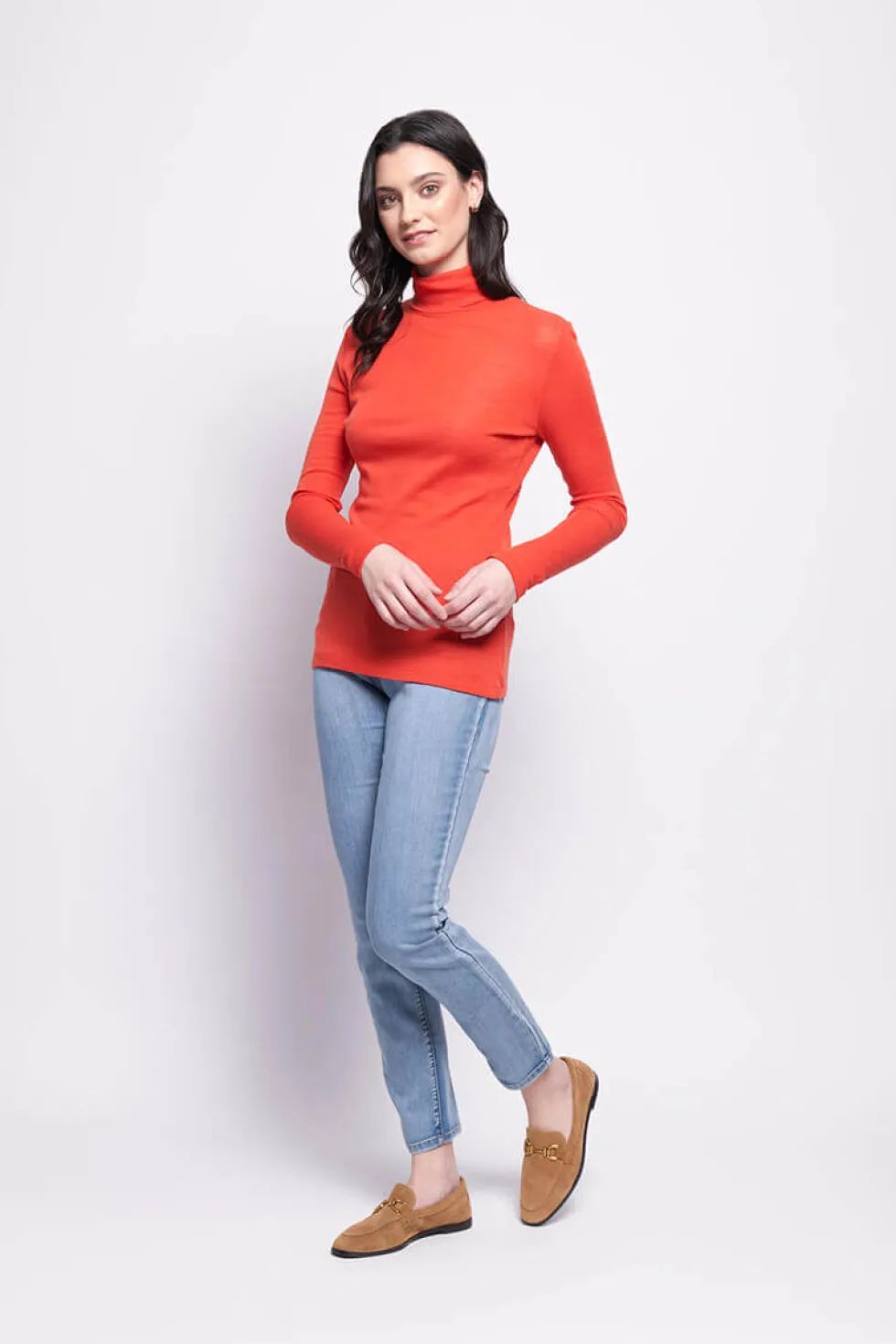 Fine Merino Polo Neck Top -Neon Flash Orange FO4171 by Foil At The Wardrobe. 100% Merino Wool Gentle Cool Machine Wash