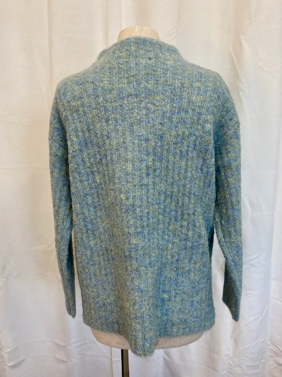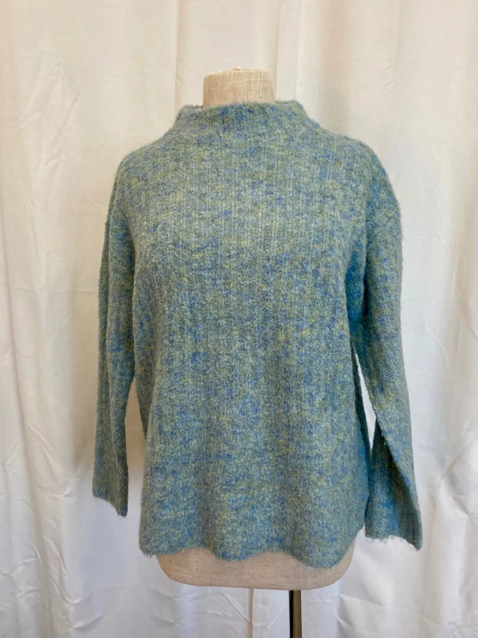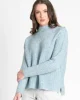 Rib & Roll Sweater – Menthol Blue by FOIL at The Wardrobe 52% Recycled polyester, 18% Acrylic, 18% Nylon, 10% wool, 2% Elastane