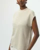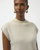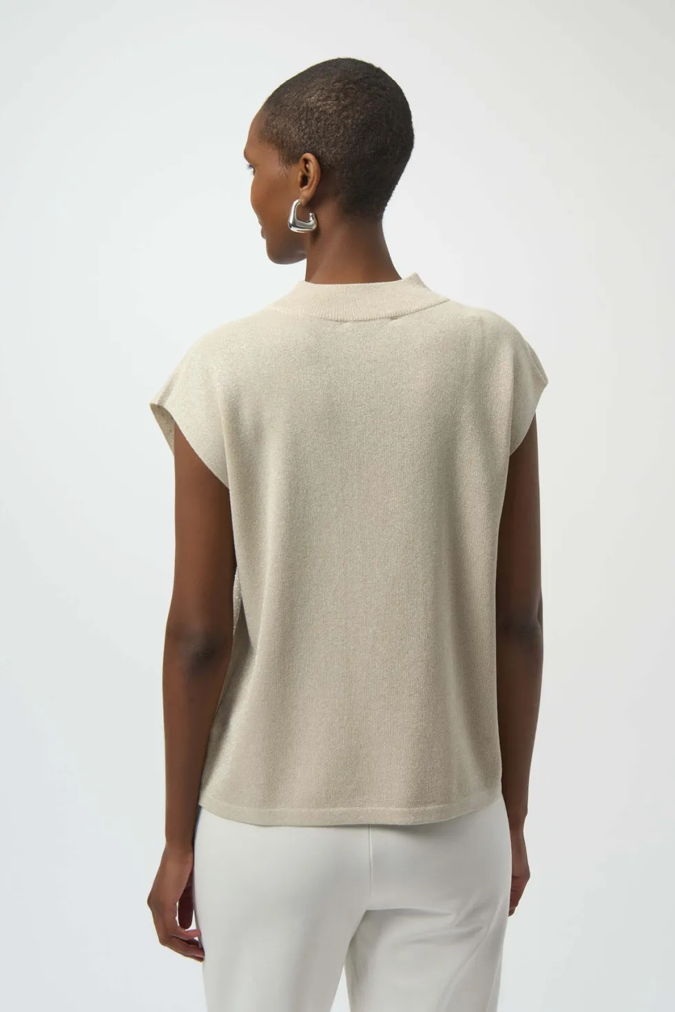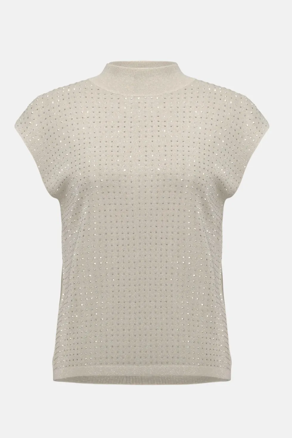 Sweater Sleeveless Knit – Birch 254935 by Joseph Ribkoff at The Wardrobe. This versatile sleeveless pullover is a chic addition to your occasion wardrobe, featuring a sophisticated mock neck and elegant iron-on detailing. Crafted from a soft sweater knit in a flattering straight fit, it pairs beautifully with a variety