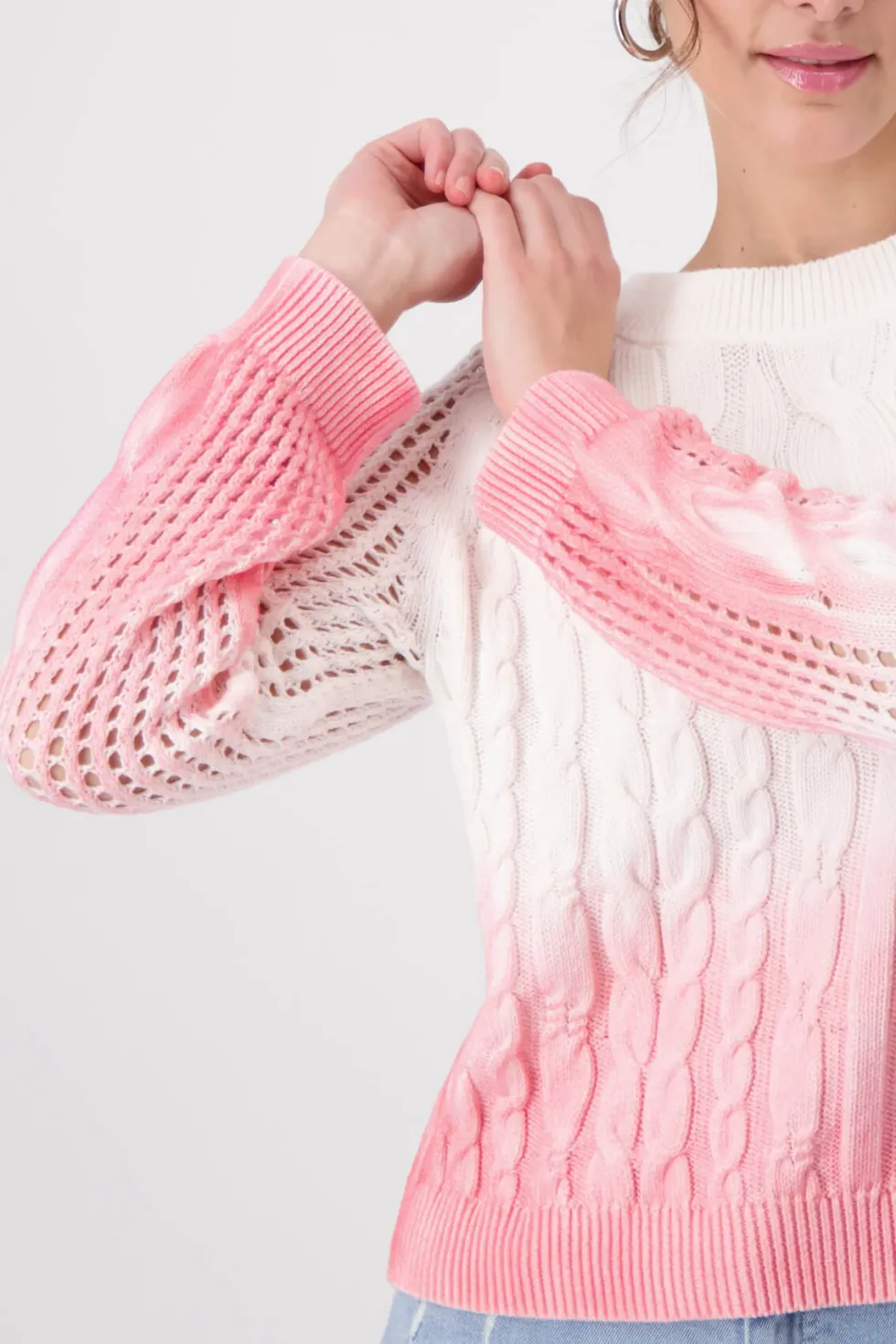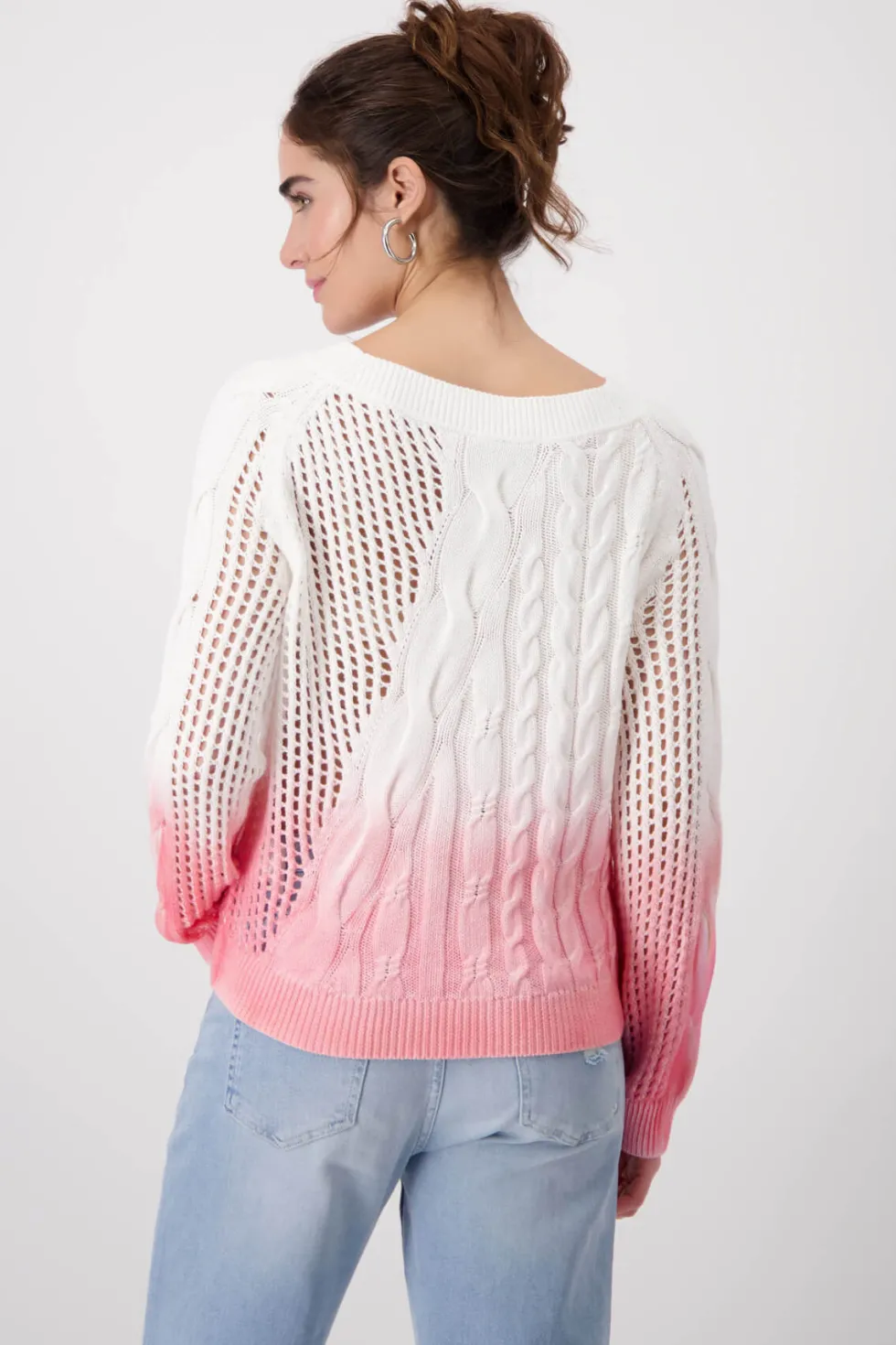 Round Neck Pullover 408440 by Monari at The Wardrobe. 100% Cotton The cotton jumper impresses thanks to its modern colour gradient and amour structure with cable stitch.