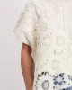 Sand Shell Stand Up Pullover – Sand 808136 by Monari at The Wardrobe. 65% polyester; 27% acrylic; 8% wool; 60% cotton; 40% acrylic High-quality cotton; Cable stitch pattern; Wool-blend lace with sequins. Oversized; Stand-up collar with slit; Short sleeves; Side slits; Longer at the back This jumper impresses with its