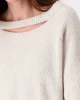 Stone Cut Out Sweater 807536 by Monari at The Wardrobe 43% Cotton 43% Acrylic 14% Metalized Polyester A high-quality cotton blend knit, with a shiny lurex effect and trendy cut out round neck. Gentle machine wash /Wool detergent/Wash inside out