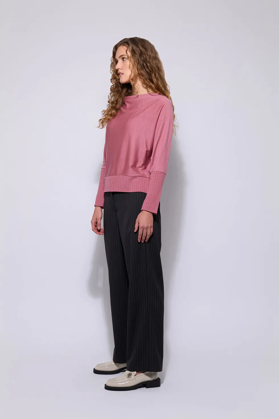 The Dolman Merino by Neris at The Wardrobe. This cozy 100% Merino top features a cowl neck and a relaxed, draped silhouette with gathered details. The ribbed hem and ¾ sleeve cuffs add texture and structure, making it a stylish choice for cooler days. Designed in Christchurch, New Zealand. | 2711 100% Merino Turn insi