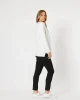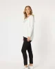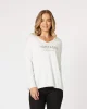 45206 – Champagne Knit – White/Black by Threadz at The Wardrobe Features: Shallow Vneck Drop shoulder, oversized style Long sleeve Relaxed fit Hi-Lo hem Fit Guide: Viscose/Polyester/Nylon Metallic printed text Soft stretch knit fabric for extra comfort Pullover style