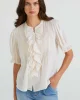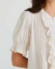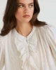 Heather Shirt 3603 Lania The Label at The Wardrobe Embrace elegance with the Heather Shirt, crafted from light cotton with a button-through design. Its ruffle neckline detail and dyed-to-match cotton lace trim exude femininity. Enhanced with delicate pintuck detailing on the front, back, and sleeve cuffs. 100% Cotton H