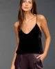 60%VISCOSE/ 40%SILK Crop top with thin straps. In silk velvet on the front and viscose on the back. Thin adjustable straps.