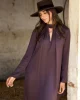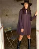 Short babydoll dress in viscose. Slightly high collar. Teardrop in front, straight sleeves. 100% VISCOSE