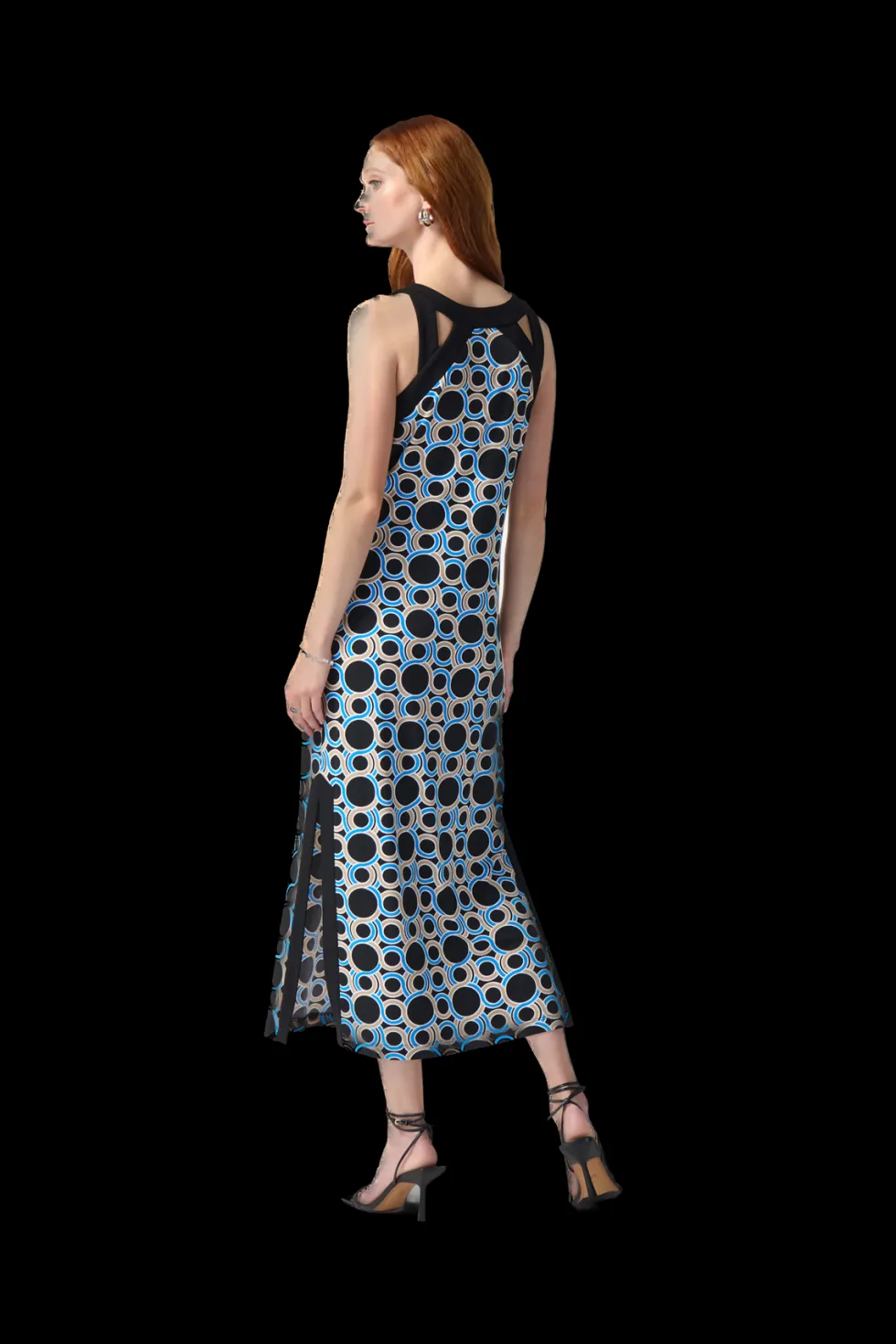 Casablanca Geomteric Print Maxi Dress 242080 by Joseph Ribkoff at The Wardrobe This is a sale item and is only eligible to return for a store credit or exchange. Tailored in a straight cut, this maxi dress flows down the silhouette with understated elegance. The silky knit garment presents a lovely dotted print with co