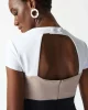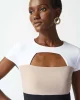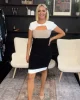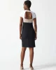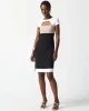 This is a sale item and is only eligible to return for a store credit or exchange. Casablanca Colour Block Sheath Dress 242156 Discover this solid fused silky knit color-block sheath dress that exudes playful elegance. A cutout at the front and back chest adds a touch of flair, while cap sleeves and a crew neckline en