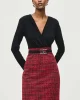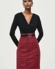 Queen of Scots Jacquard Kit Plaid Sheath Dress 243060 by Joseph Ribkoff at The Wardrobe. This is a sale item and is only eligible to return for a store credit or exchange. Add a hint of vintage glamour to your personal style with this charming sheath dress. The silky knit wrap neckline paired with the plaid print on t