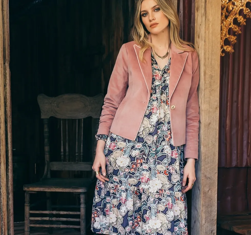 Legacy Dress – Blue Multi LS2629 by Loobies Story at The Wardrobe Midi dress in luxe sateen, with a V-neckline, and hidden in-seam pockets with elasticated cuffs 50% Viscose 50% Rayon Cool hand wash using mild detergent. Do not machine wash. Do not rub/soak/wring/bleach. Do not tumble dry. Dry away from direct sunligh