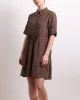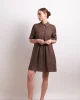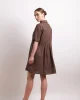 In Contrast Dress – Cocoa 2792 by Neris at The Wardrobe Clean lines with contrast detail stitching, the In Contrast Dress is a relaxed-fit linen style with pintuck pleats through the front and back waist. The dress features a collar, does up with mother of pearl buttons and has a feature top front pocket and side pocke