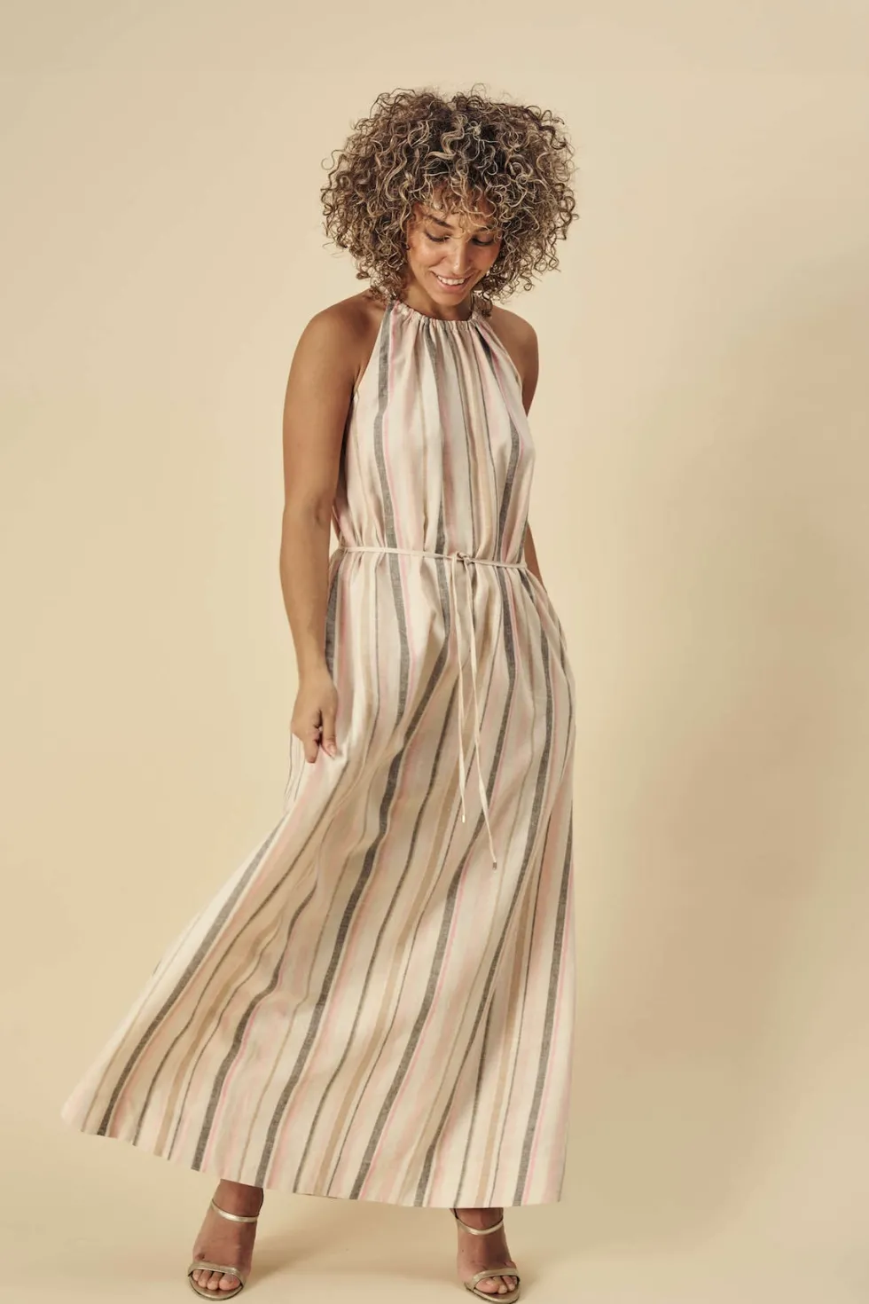 Adene Lino by Mos Mosh at The Wardrobe 55% Linen 45% Viscose Comes with matching fabric tie belt. Cold gentle machine washable.