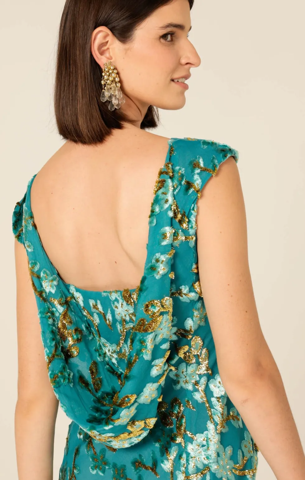 Heavenly Heights Maxi Dress by Sacha Drake at The Wardrobe. The Heavenly Heights Maxi Dress is simply elegant, crafted from a lightweight textured fabric with raised detailing and a satin lining. Featuring a sophisticated boat-neck front, a dramatic cowl back, and a fishtail hem, this Australian-designed bias-cut dres
