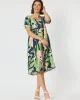 Top 45856 Clarity at The Wardrobe GENEROUS LABEL WE RECOMMEND GOING DOWN A SIZ The Como dress is a stunning V-neck empire waisted style With side pockets of course! Cap sleeve for top arm coverage And a length that hits just below the knee on most This is a printed textured viscose fabric which means it is beautiful
