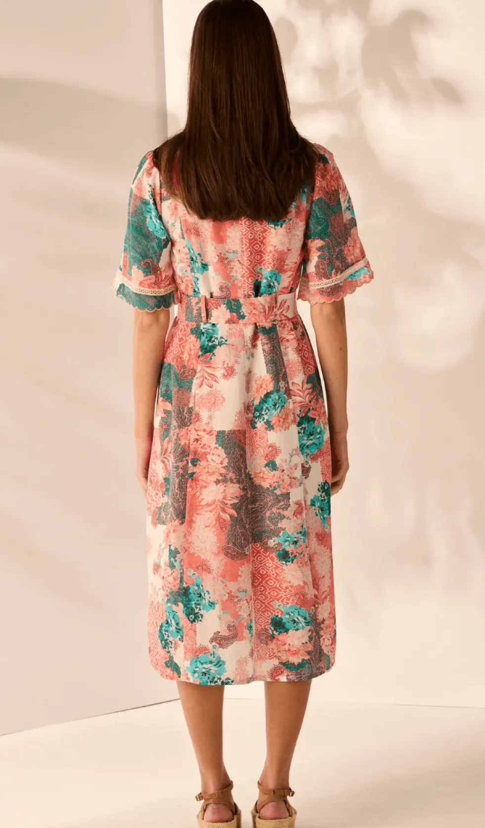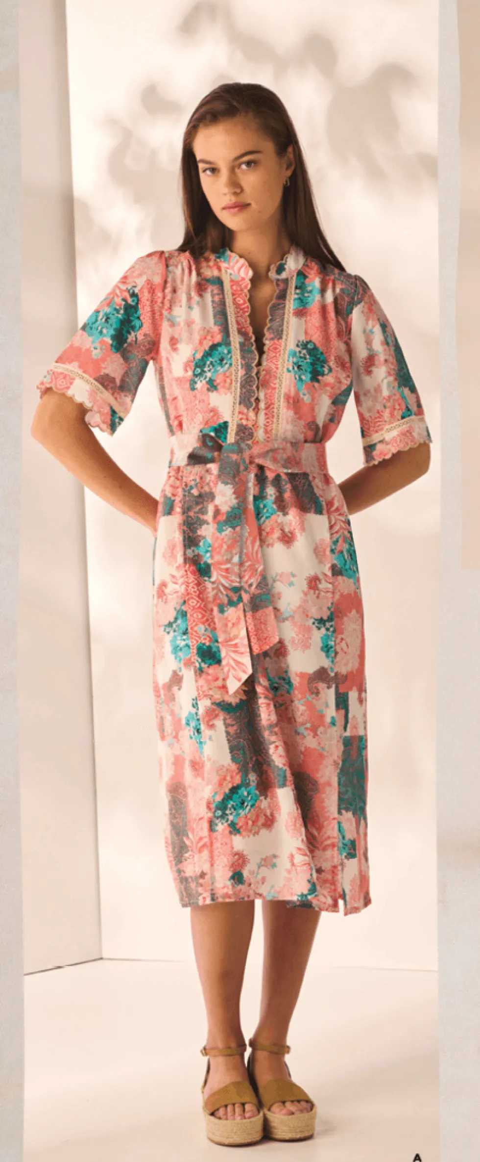 Chantelle Print Dress 3868 by Lania The Label at The Wardrobe The Chantelle Dress is an elevated style featuring a delicate lace trim inserted into the centre front panel and cuff, with the scallop embroidery around the neckline, centre front opening and cuff. An flattering a-line silhouette with buckled tie at the wai