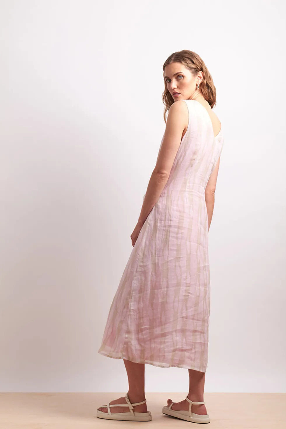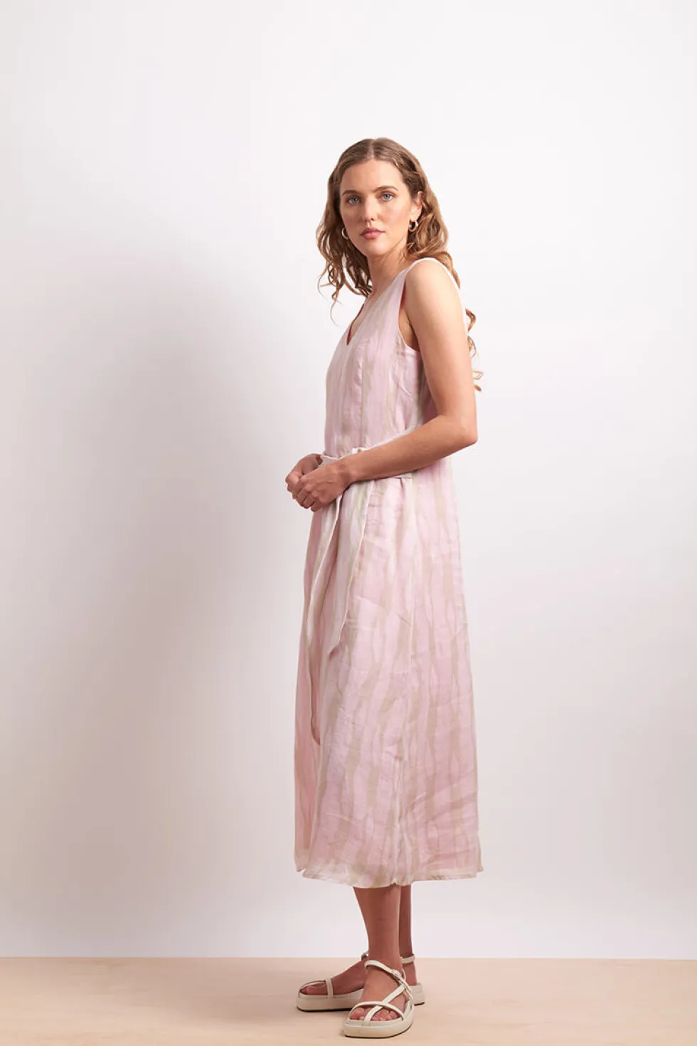 Soft Focus Dress – Sherbet 2840 by Neris at The Wardrobe The Soft Focus Dress is a floaty, semi-sheer maxi with a softly flared A-line shape. Featuring a V neckline and adjustable tie that can be worn at the back or front to define the waist, this is a dreamy layer with subtle versatility. Designed in Christchurch, New