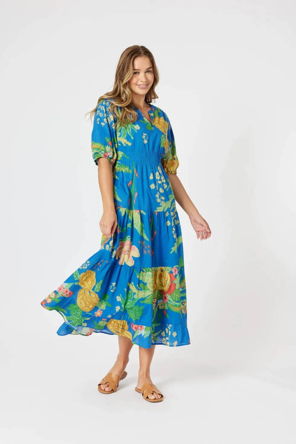 Tropics Dress – Blue/Multi – 48126 by Threadz at The Wardrobe Step into vibrant summer style with The Tropics Dress, designed in a striking blue base adorned with bold tropical blooms and lush greenery. Playful yet elegant, this dress captures the joy of sunshine-filled days and breezy escapes. Crafted from a lightweig