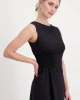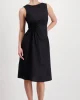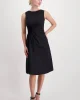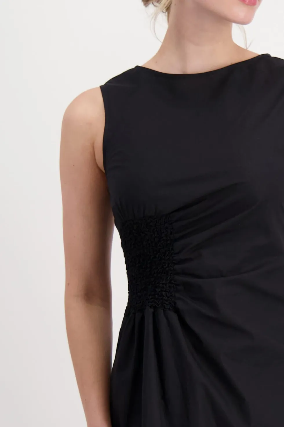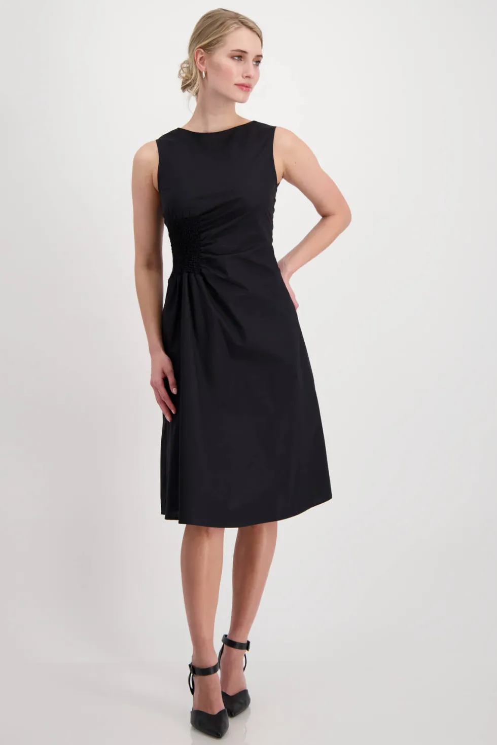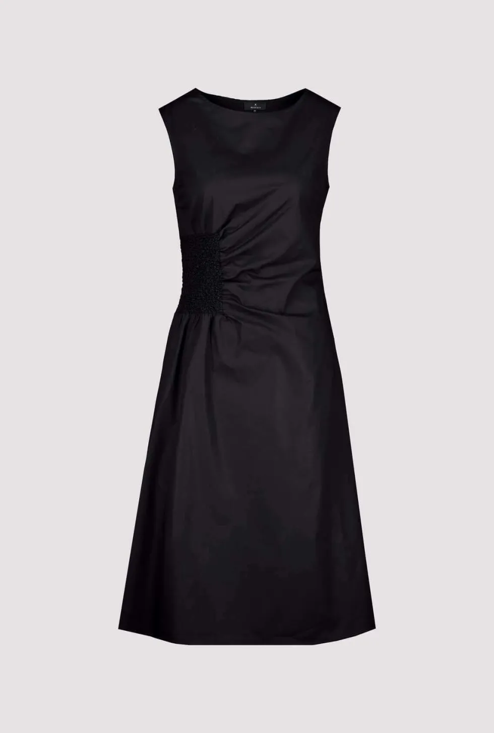Side Gather Midi Dress by Monari at The Wardrobe The 100% cotton dress is knee-length and has a wide lateral gathering at the waist for a feminine outline (fit).