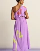 This purple dress has a handmade element inspired by the iconic gardens of Marrakesh. The dress has an elegant one-shoulder, finished with ruffles and a detachable tie belt at the waist. Thanks to the use of LENZING™ ECOVERO™ fabric, the dress fits smoothly and the item is 'more sustainable'.• Purple dress• Asymmetrica