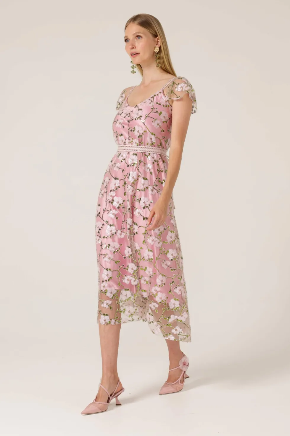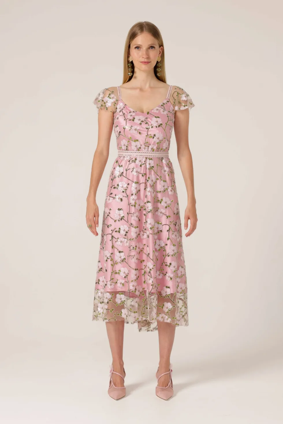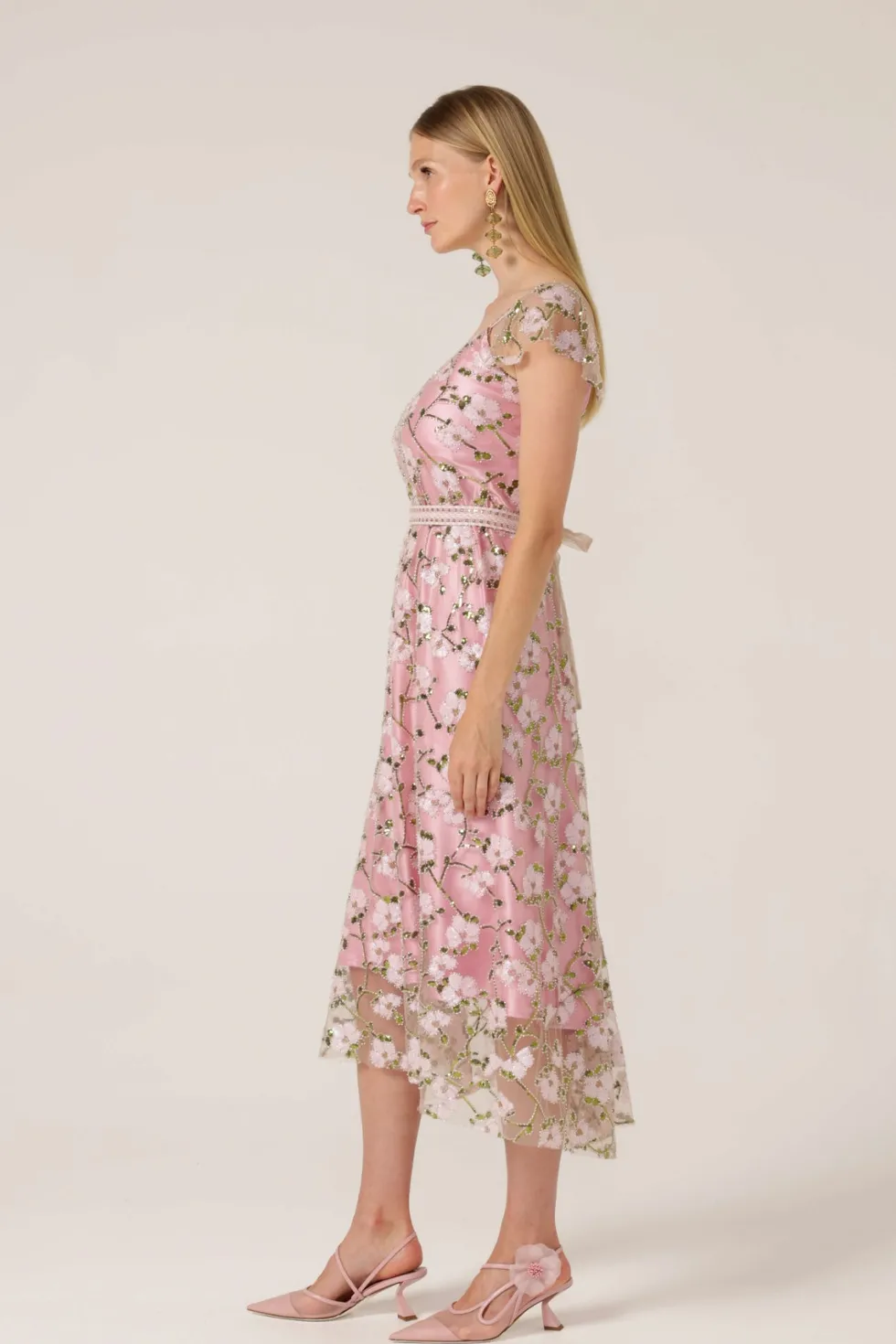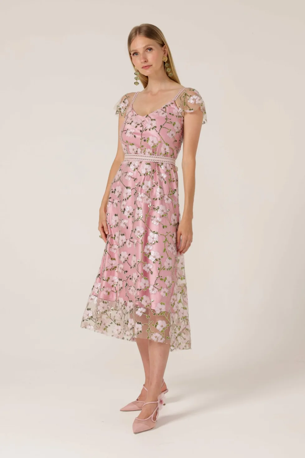 Anna's Hummingbird Dress Sacha Drake At The Wardrobe Step into spring with the elegant Anna's Hummingbird Dress. Crafted with intricate beaded mesh over satin, this dress features delicate flute sleeves and a removable beaded belt for a customisable silhouette. It combines femininity and subtle glamour, perfect for yo